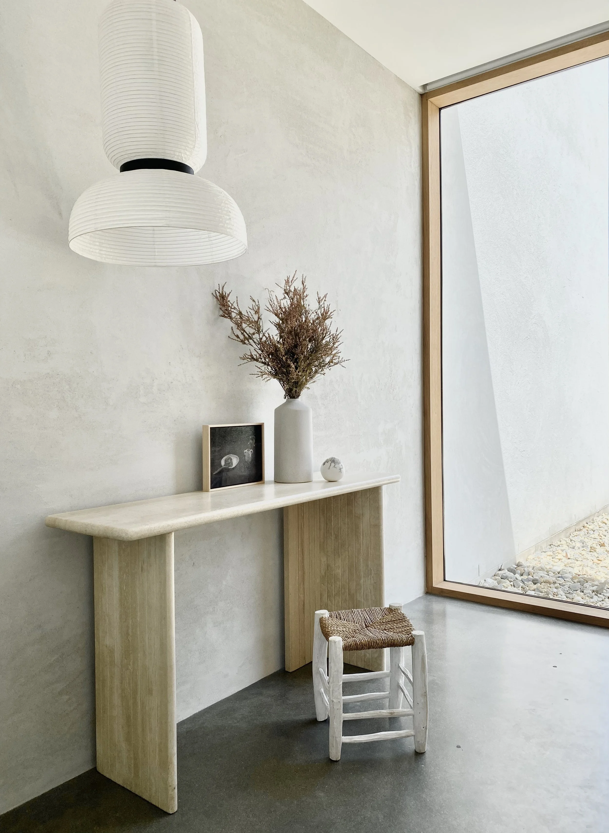 Natural light and greater connection to the outdoors were paramount in the design allowing views to the ever-changing greenery in the wider landscape. Textured materials in varying finishes emphasises the play of light from the northern aspect and the screened exterior. The use of marble, lime render, natural oak and woollen carpets ground this home and mimic its alignment with its natural surroundings.