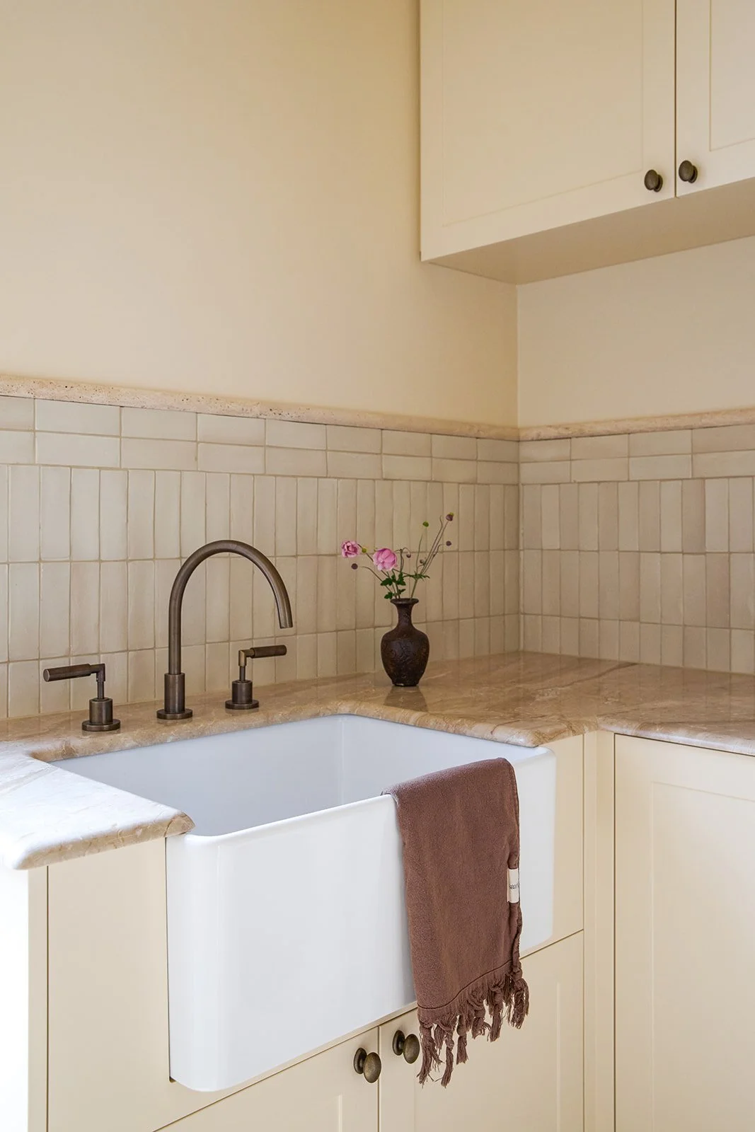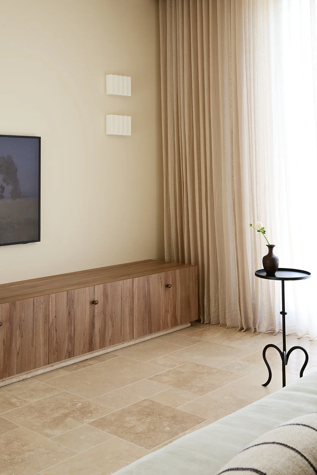 Natural materials were a common thread throughout this project with an emphasis on tactility and surface finish. Mimicking the colours of the local limestone cliffs mixed with warm clay tones and golden sand the interiors focus on soft colour washing to create a feeling of warmth and ease.