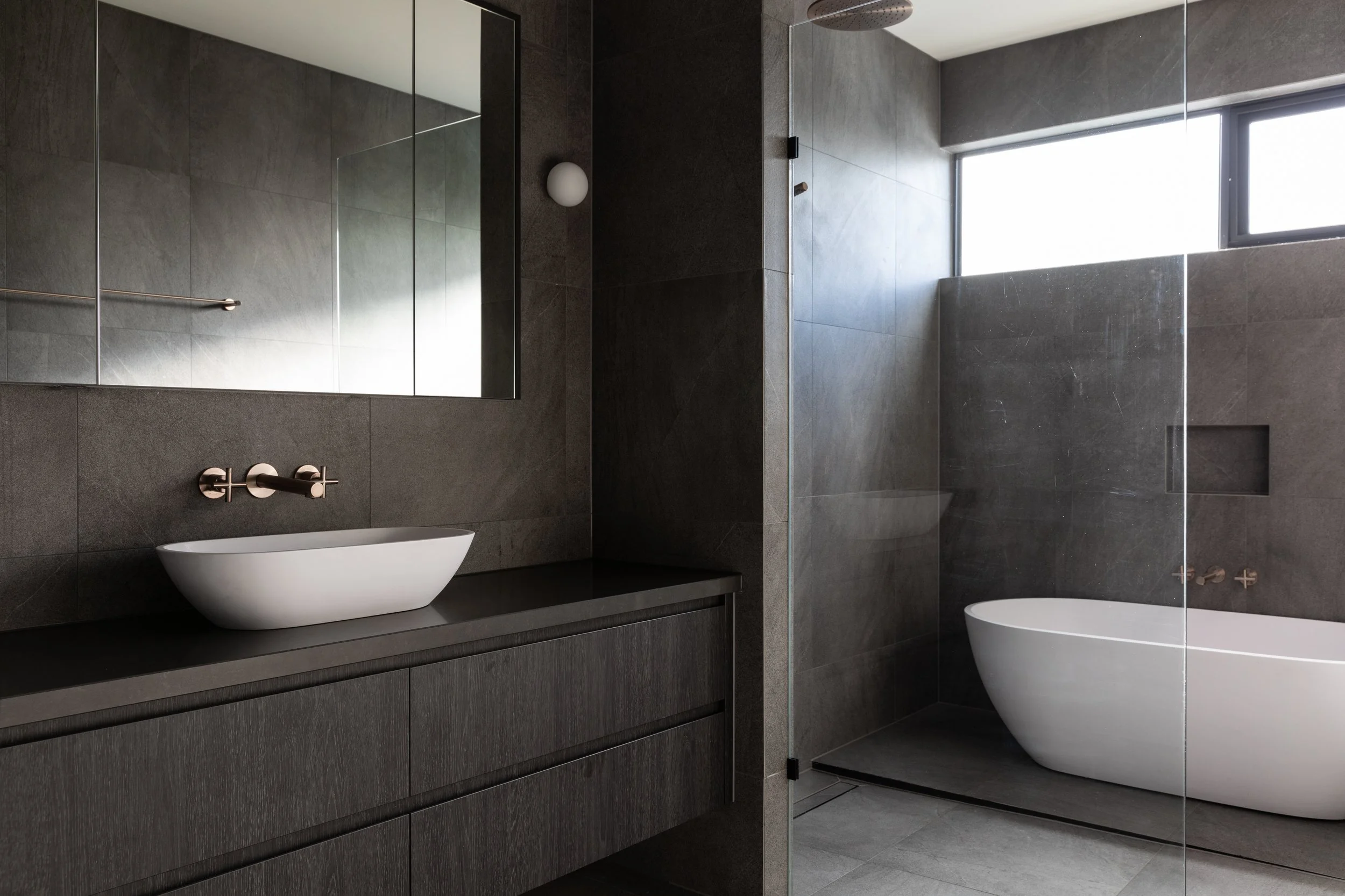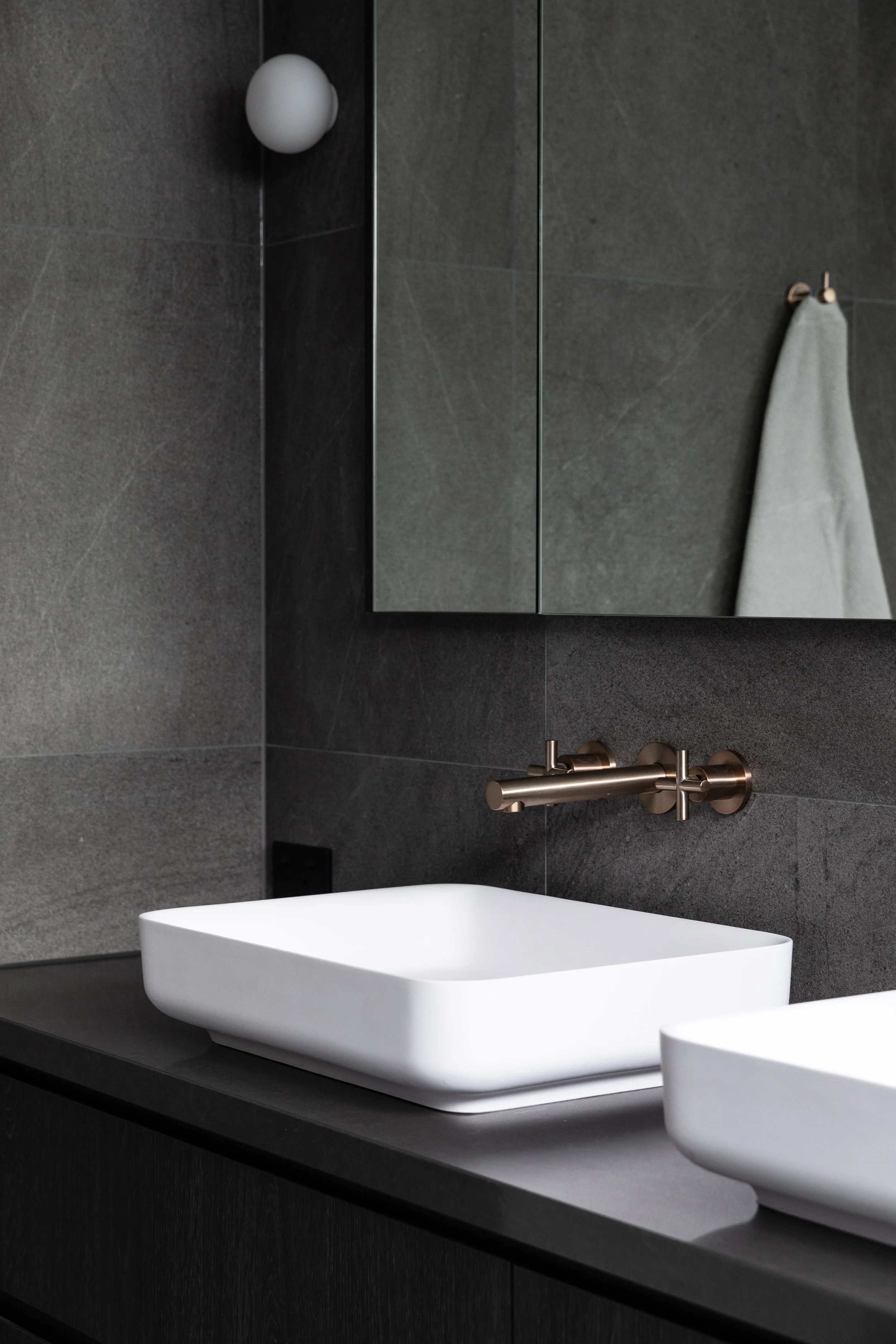 Situated a stones throw from the Barwon River in the coastal hamlet of Barwon Heads, River View stands proud in it’s textural materials and dark earthy colour palette.